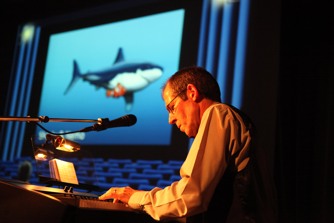 Ein Spezialist macht die Bühne zu einem Einsatz-Stützpunkt – ganz im Interesse des Publikums und der zoologischen Fachwelt. Aber was hockt da im Zuschauerraum?